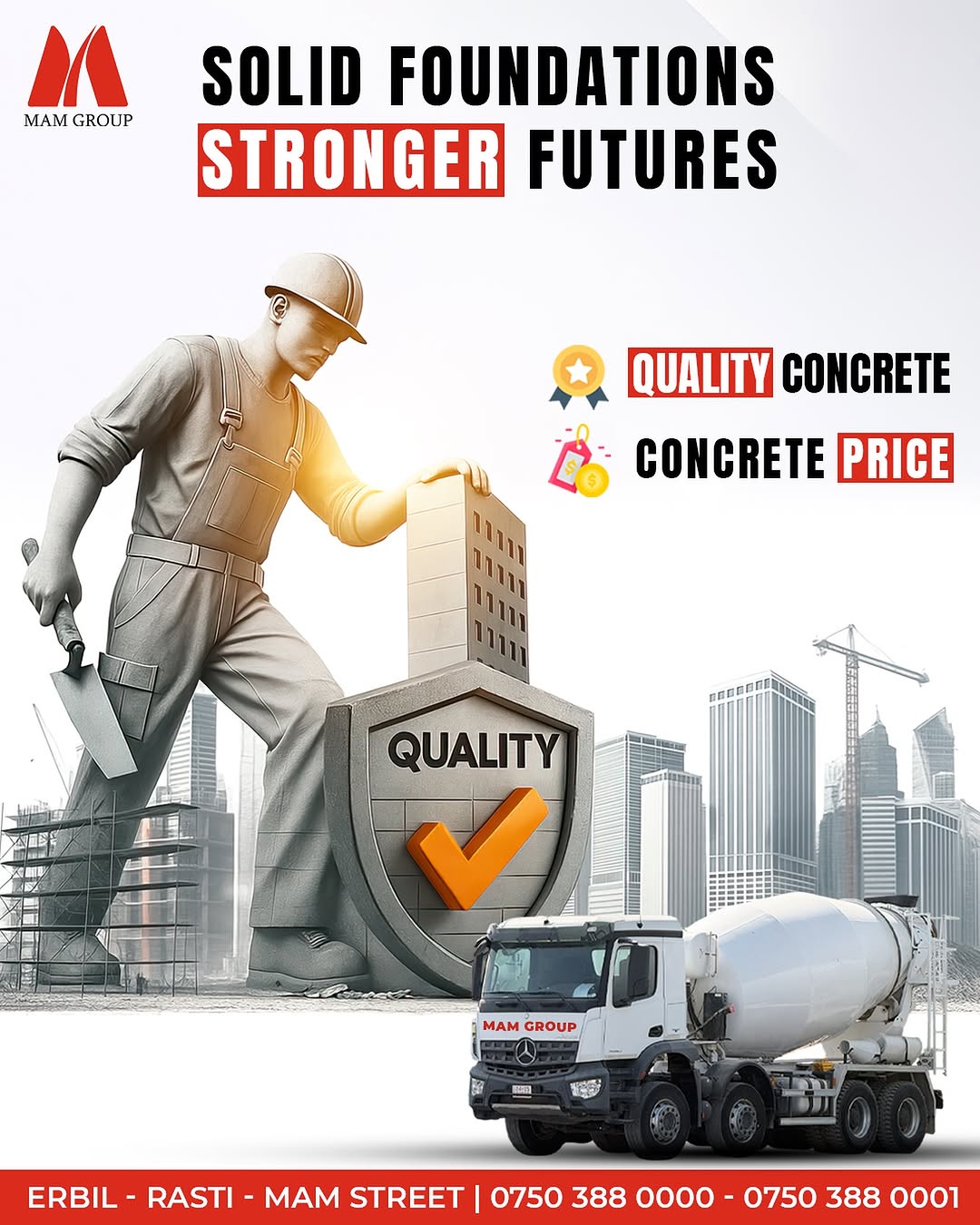 MAM Group is one of Erbil’s leading concrete and construction providers, offering high-quality mixes, fast delivery, and reliable service for projects of every scale.